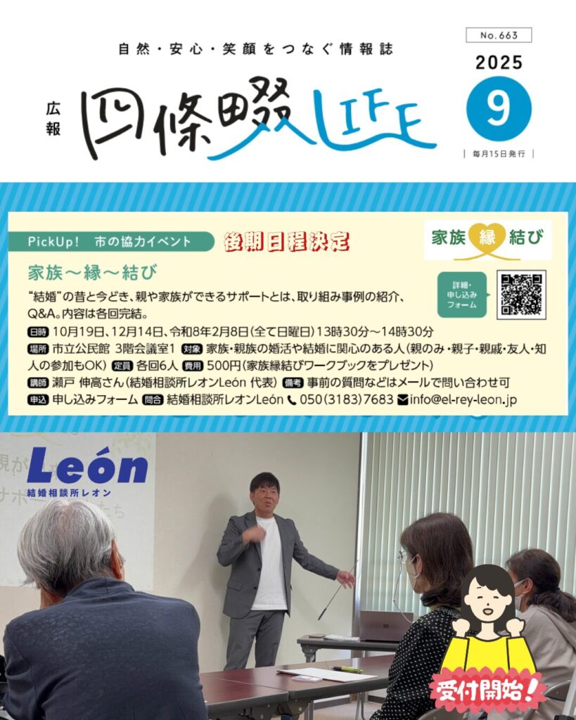 結婚相談所レオンLeónがお届けする、四條畷市公認の特別な婚活セミナー。