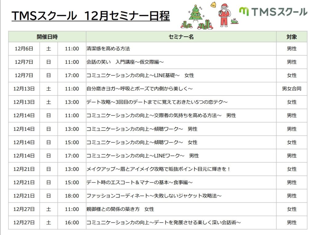 2025【12月度】TMSスクール:オンラインセミナー予定表